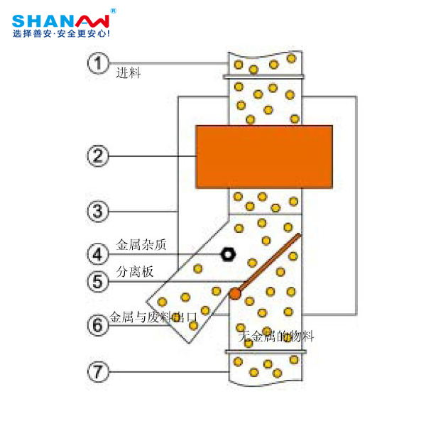 1 用于從自由落體的散料中分離磁性及非磁性金屬,采用特殊的軟件設計,提高了檢測性能;